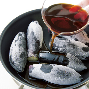 冷凍なすをそのままフライパンに並べ、クタクタになるまでじっくり煮るだけで、甘辛味がじんわりとしみ込んだなすのおいしさを満喫できます。