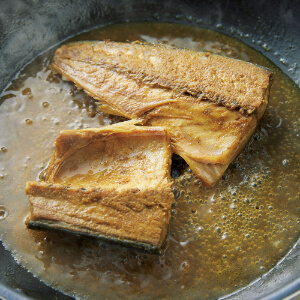 野菜がほぐれたら、さばを返し、ふたを外したままさらに約5分間、汁けがほとんどなくなるまで煮詰める。野菜は時々返し、火が通ったら取り出して塩小さじ1/4、こしょう少々をふる。