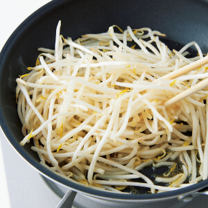 もやしを炒める