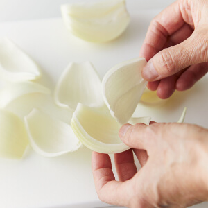 たまねぎは6等分のくし形に切り、1〜2枚ずつはがしておく。【A】は混ぜ合わせておく。