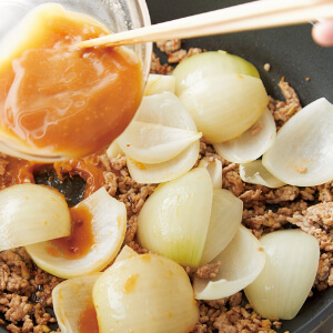 今回ご紹介するのは、手ごろな豚ひき肉に身近なコスパ食材を合わせた「マーボーたまねぎ」のレシピ。