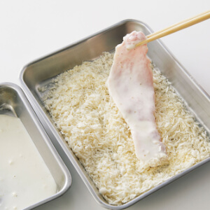 【ミラノ風カツレツ】の豚肉に衣をつける
