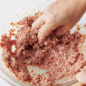 【肉ダネ】を混ぜ、そのほかの下ごしらえをする