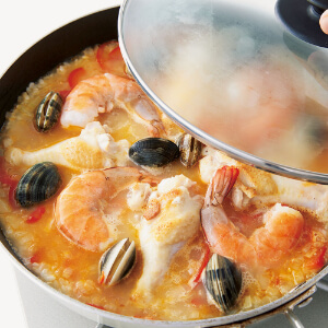 今回ご紹介するのは、フライパンでつくって、そのまま食卓へ出せる「パエリア」のレシピ。