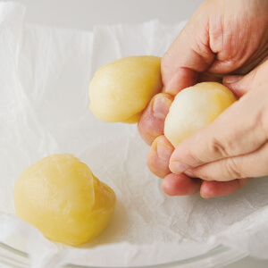 オーブンで料理やお菓子を焼くときに天板に敷くオーブン用の紙。耐熱温度が高く、表面には生地がくっつかないよう加工されています。電子レンジにもかけられ、丈夫で切れにくいので、餅などをこねるときに最適です。食材が容器につかないので、洗い物が少なくてすみます。電子レンジから出したては熱いので、厚手の布巾を重ねて持つとよいでしょう。耐熱皿に敷くときは、一度手でクシャッと丸めてしわを寄せてから広げると、耐熱皿の形になじんで扱いやすくなります。