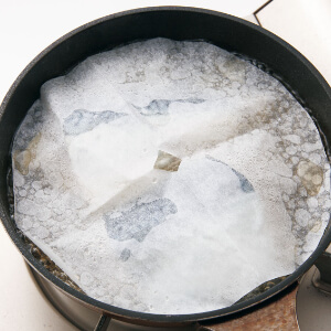 落としぶたは、食材に直接のせて使う小さいふた。落としぶたをすると、少ない煮汁や水分が対流して全体に行き渡り、味がしみ込みやすくなる。市販品もあるが、おすすめはオーブン用の紙。アルミ箔(はく)を使ってもかまわない。鍋やフライパンの直径より一回り小さく切り、中央に穴を開ける。穴から蒸気が程よく抜け、落としぶたが浮き上がるのを防げる。
