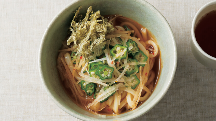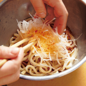 せん切りの大根と冷たいうどんを合わせれば、さっぱり感がさらにアップ!酸味と辛みが絶妙に調和したつゆが、おいしさの決め手です。