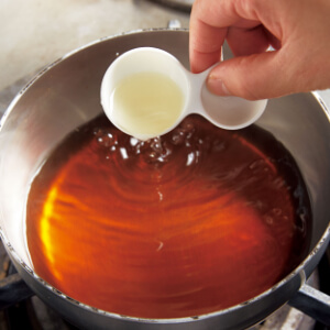 合わせ酢の中でも、多めのだしと調味料を加えてまろやかな味わいに仕立てたのが「加減酢」。酸味が抜けないよう、酢とかんきつ類の搾り汁は火を止めてから加えるのがポイント。保存は清潔な保存容器に入れ、冷蔵庫で約1週間が目安。酢の物やうどんのつゆなどに。