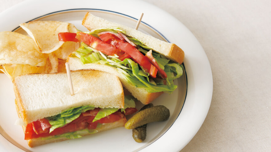 ベーコン(Bacon)、レタス(Lettuce)、トマト(Tomato)の頭文字をとったサンドイッチ。カリカリベーコンのうまみと野菜のみずみずしさが絶妙のバランスです。