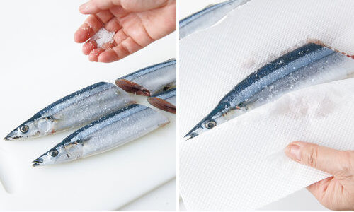 ポイントは「洗う」「塩をふる」「水けを拭く」といった下ごしらえを丁寧にしてさんまのくせを除くこと。