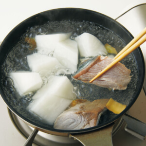 脂ののったぶりのうまみが、柔らかな大根にしみ込みます。先に大根を煮てから、ぶり、調味料の順に加えるのがポイント。