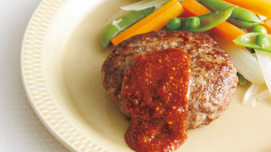 柔らかで、肉のおいしさを実感できるハンバーグ。たまねぎを炒めずに加えるお手軽レシピです。
