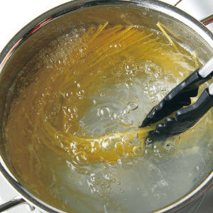 最初に混ぜてほぐしておくと、スパゲッティがくっつきにくい。
