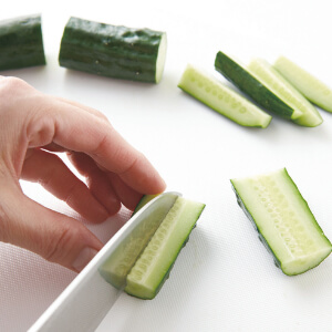 きゅうりは長さを3~4等分に切り、縦四つ割りにする。豚肉は食べやすい大きさに切り、塩・こしょうをふって下味をつける。卵は溶きほぐす。
