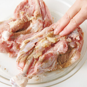 【A】を手ですり込む。冷蔵庫に入れ、2時間以上(できれば一晩)おいて下味をつける。