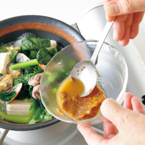 みそは直接加えず、煮汁少々で溶いてから加えると、なじみやすい。