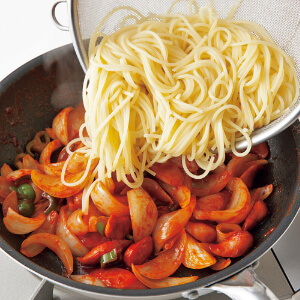 たまねぎは人気のナポリタンの名脇役。でも、旬の新たまねぎなら主役にして春バージョンを楽しみましょう。