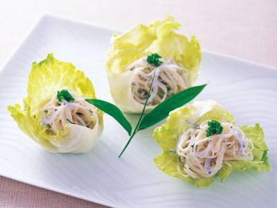 柔らかな春キャベツをふんだんに使った、見た目にも春らしいパスタです。ちりめんじゃこと実ざんしょうが、アクセントになって味を引きしめます。