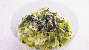 ちぎった棒寒天にごま油ベースのドレッシングがしみ込んだ春雨サラダ風の味わいです。オクラの食感がアクセント。