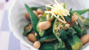 ちぎった棒寒天にごま油ベースのドレッシングがしみ込んだ春雨サラダ風の味わいです。オクラの食感がアクセント。