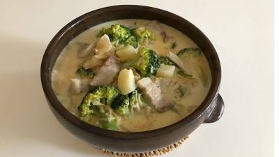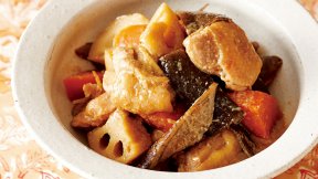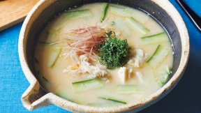 たっぷりの練りごまを加え、こっくりとしたおいしさを楽しみます。水につけておくだけで簡単にとれる昆布の水だしを使えば、本格派の豚汁になります。