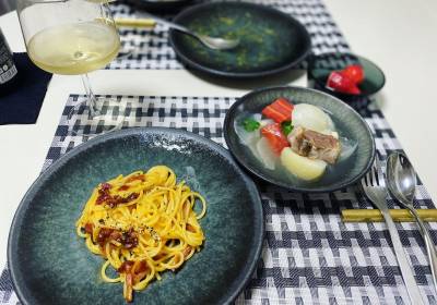 食べる時にパルメザンチーズを削り黒胡椒をふりました。次回ピーマン入れてみます。