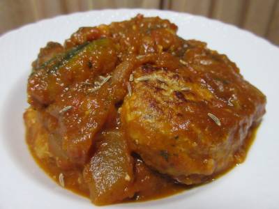 トマトはホールトマト缶、かぼちゃは冷凍のかぼちゃを使いました。冷凍のかぼちゃを使ったせいか、かなり煮崩れて汁気のない感じに・・・(汗)
