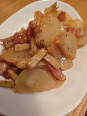 残っていた小かぶとエリンギで作りました。オリーブオイルも足しました。