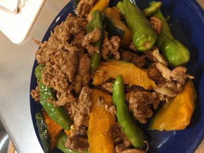 牛肉が無くて豚こまで作りました。 しょうゆとバターのみとシンプルな調味料なのにしっかりコクのある味に。 かぼちゃの甘みとバター醤油が相性がよく箸が進みました。