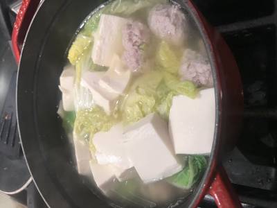 肉団子がふわふわでした! お豆腐と白菜は最後に入れてにすぎないようにするとおいしいと思います。 お鍋みたいでした。