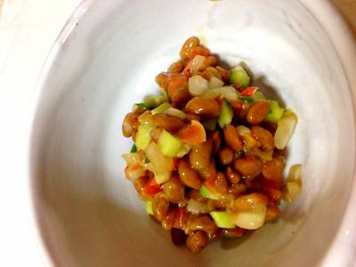 いつもの納豆を簡単にアレンジできました。彩りが良く食欲が増します。分量も覚えやすく、常備菜でできるのも嬉しいです♬みじん切りのサイズはお豆より少し小さい位がちょうどいいと思います。