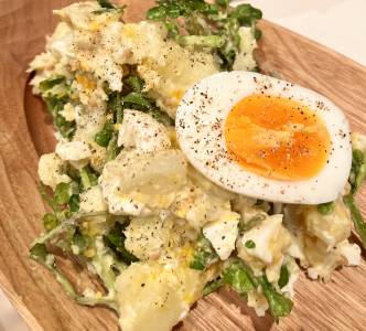 美味しい。何度も作っています。茹で上がりのじゃがいもにお酢を少し混ぜて潰すと味がシャープになります。また、ゆで卵の片方をじゃがいもと潰しながら混ぜてしまい、残りを半割りにして添えるのが好きです。