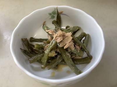 なべに【A】の材料を合わせて一煮立ちさせ、ツナを缶汁ごと加える。再び煮立ったら1のいんげんを加え、汁けが少なくなるまで中火で煮る。