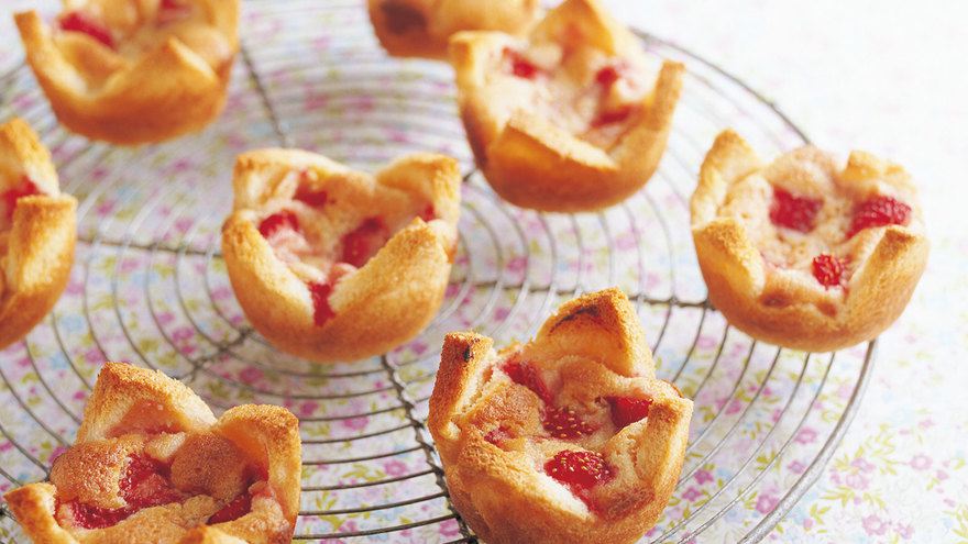 パンをタルト生地のケースに見立て、いちごとアーモンドクリームを入れて焼き上げます。
