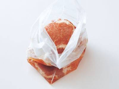 1 はちみつ豚は、調理の前に軽く水で洗って、水けをふき取る。