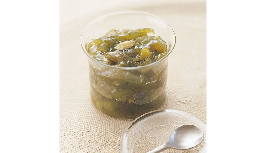 青梅の甘みとキウイの酸味が程よく合わさった、上品な味わいのジャム。「割り梅の砂糖漬け」があれば、簡単につくれます。