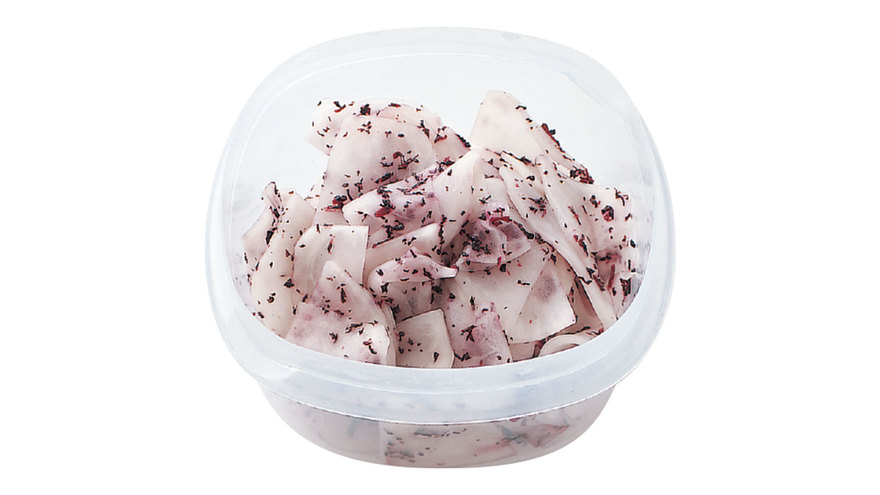 塩でもみ、しんなりしたら、赤じそふりかけであえる。