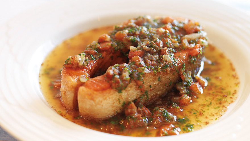 銀ざけは弱めの中火でじっくりふんわり焼き上げて。焦がしバターが、銀ざけの味と香りをさらに引き立てます。