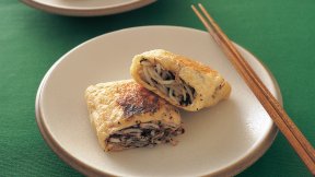 水けが出ないよう、もやしを詰めたらすぐに焼く。
