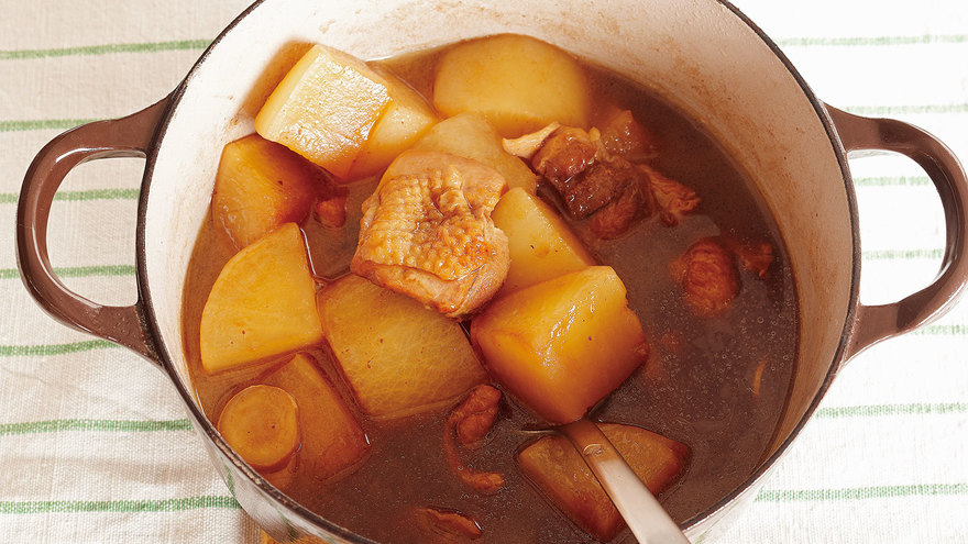 厚めに切った大根の味のからんだ表面と、みずみずしさの残った内側のコントラストがおいしい。あまり長く煮込まないのがポイント。