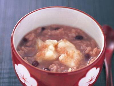 小豆のゆで汁を使った栄養たっぷり小豆がゆ!香ばしい味わいが米の甘さと相まって、口いっぱいに広がります。
