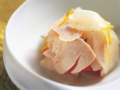 大根のシャキシャキ感とさっぱりとしたささ身がおいしい大根の甘酢漬け。相性も抜群!
