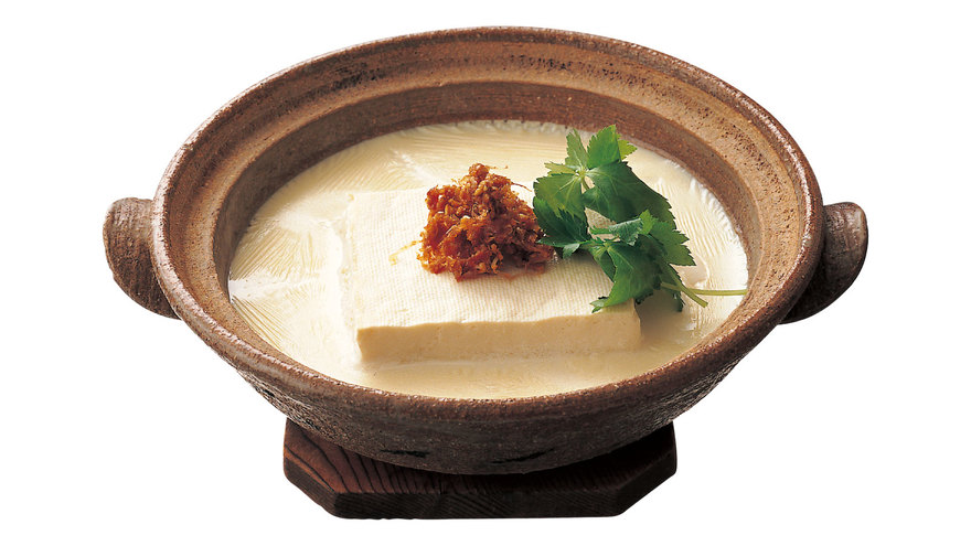 土鍋に豆乳(無調整)と水けをきった木綿豆腐を入れて弱火にかける。