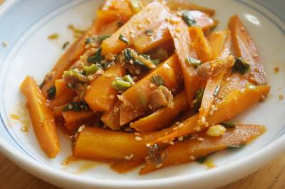 にんじんと牛肉のしっかりしたうまみをコチュジャンで仕上げました。