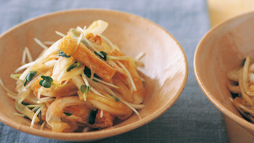 焼きつけた油揚げの香ばしさと柚子こしょうの辛みがきいた、どんな料理にも合うさっぱりした和風のあえ物。