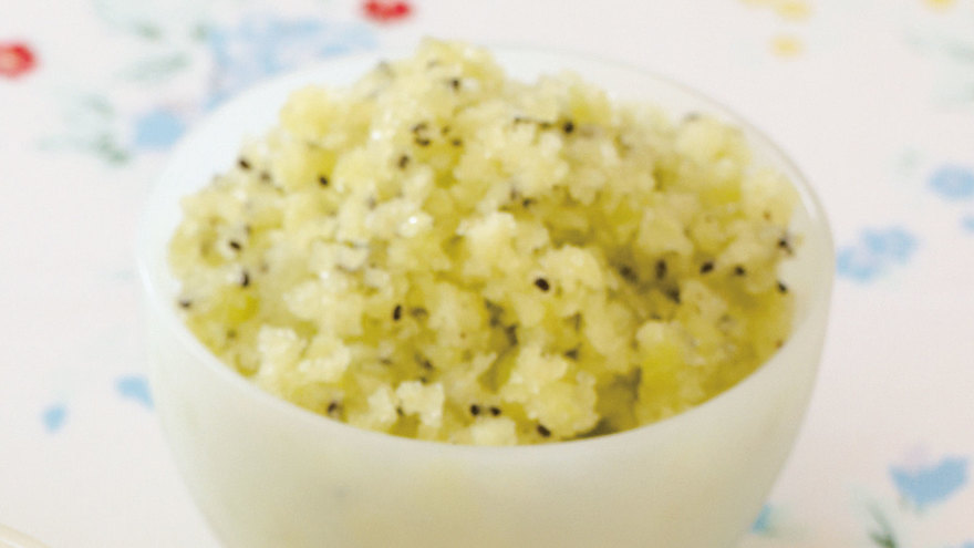 2 シロップは同量の砂糖と水でつくる。耐熱容器に砂糖と水を入れ、サッと混ぜて、電子レンジ(600W)に1分間かける。取り出して混ぜ、砂糖を完全に溶かし、粗熱を取る。