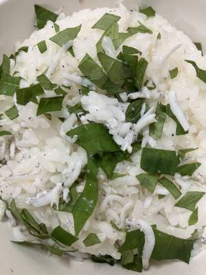 ボウルに2とエクストラバージンオリーブ油・しょうゆ各小さじ2を入れて全体をよくあえる。1のトマトを加え、塩・黒こしょう各少々をふり、青じそを手でちぎって加える。全体を混ぜて器に盛る。