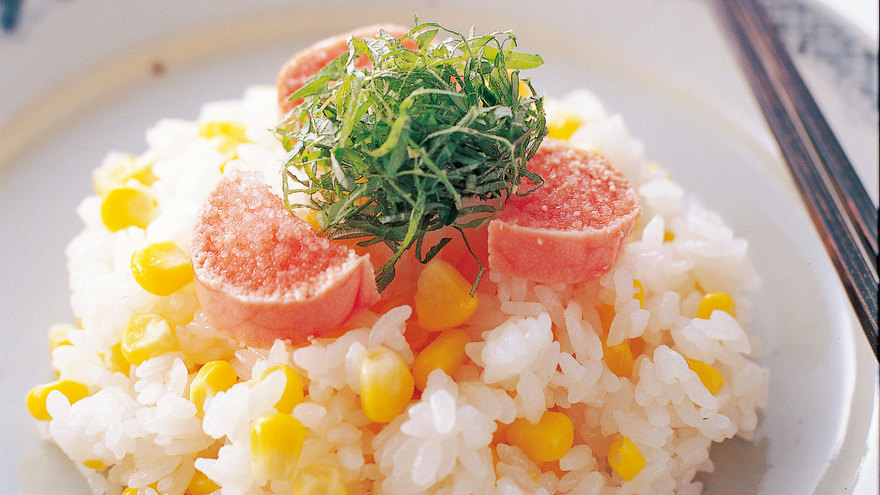 とうもろこしは浸水した米に生のまま加えていっしょに炊き上げ、香りよく仕上げる。
