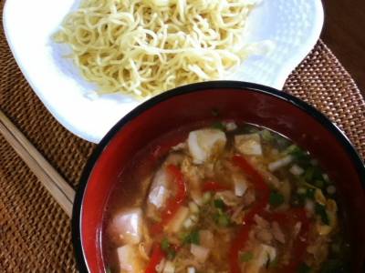 沸騰した湯で、中華めんを袋の表示時間どおりにゆでる。流水で洗ってしめ、水けをしっかりきって皿に盛る。3につけて食べる。