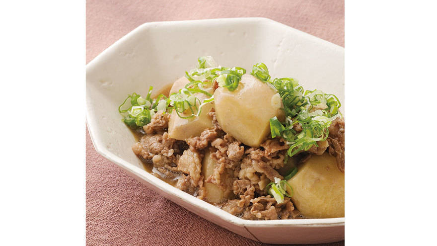 シンプルでありながら、素材のうまみが際立つうま煮。里芋と相性のよい牛肉の甘みを、自家製「親子丼の素」のこっくりとした味わいが引き立てます。